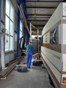 Der Träger musste geschweißt werden. Unglaublich welche Schäden bei einem solchen Fahrzeug auftreten können. Nicht auszumalen wenn uns so etwas erst beim TÜV aufgefallen wäre. Ohne Boden im Koffer war das Schweißen problemlos möglich und der TÜV-Prüfer hat hier sein OK jetzt schon gegeben.