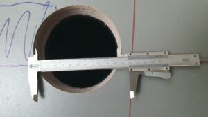Mit einer 120 mm Lochkreissäge haben wir uns dann durch den Boden gearbeitet und sind bei stolzen 113,10 cm² gelandet. Also mehr als genug Fläche, um im Zweifel zu sagen: „Das passt schon.“