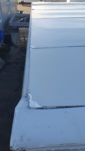 Die Klebeflächen der Seitenbalken blieben unbehandelt – die brauchen offene Poren für die finale Klebeaktion. Bald wird alles wasser- und luftdicht verfugt.