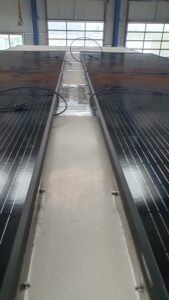 An den Stellen, wo die Kabel durch die Decke geführt werden, haben wir Gummitüllen eingesetzt. Klingt unspektakulär, ist aber Gold wert – denn so sind die Kabel gegen Durchscheuern geschützt. Und da es sich um Strom handelt, fanden wir das irgendwie… wichtig. Verkabelt wird das Ganze später im Schaltschrank – da dürfen sich dann nochmal unsere grauen Zellen beweisen.